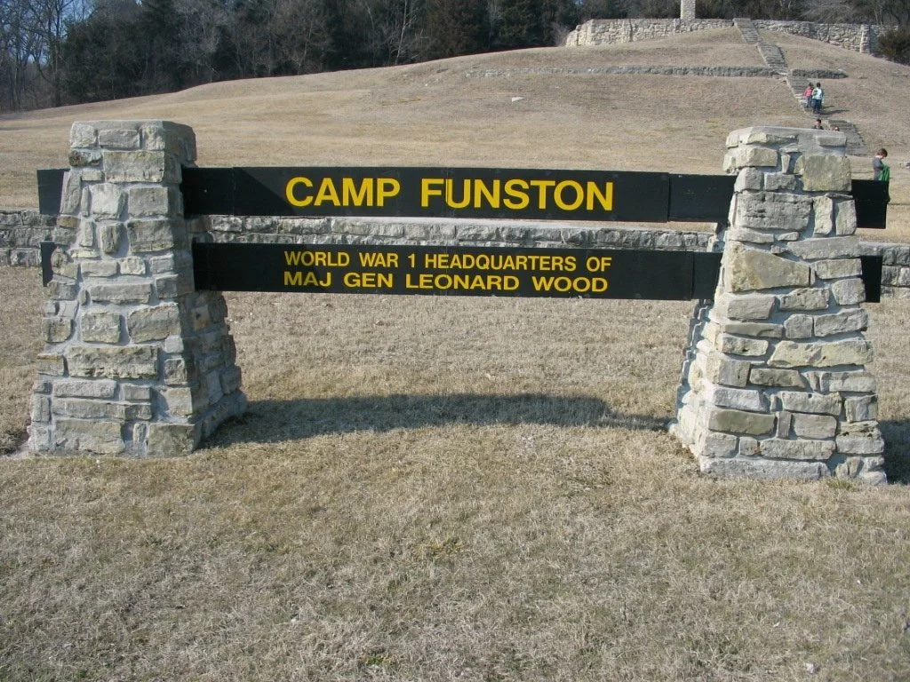 Camp Funston was established as one of sixteen Divisional Cantonment Training Camps during World War I. Construction of the 2,000 acre camp began during the summer of 1917 and eventually encompassed approximately 1,400 buildings
