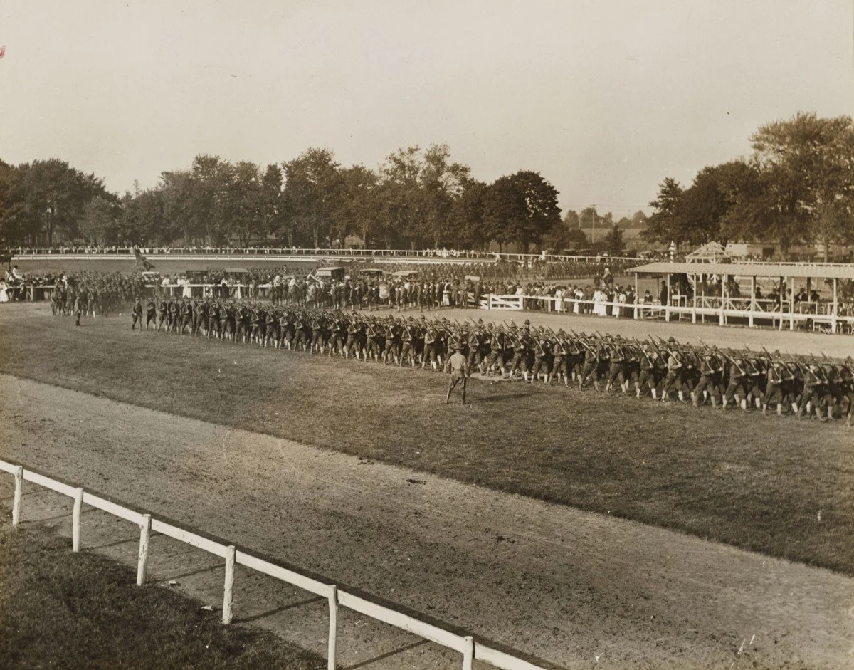 Soldiers of the New York National Guard's 69th Infantry regiment, parade at the Nassau County Fairgrounds in September 1917 as the unit trained at Camp Albert Mills at the site of present day Garden City, N.Y. | Photo courtesy U.S. Army